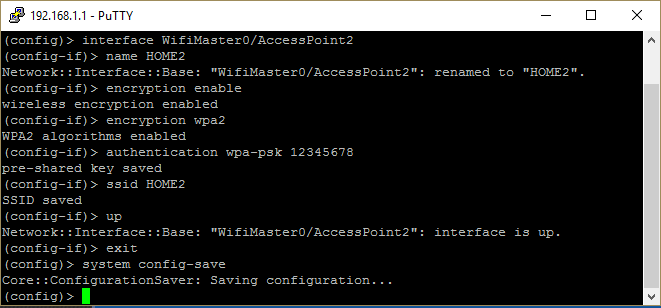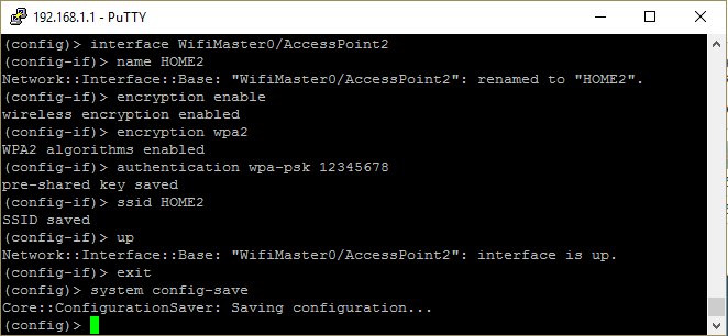 Также в интерфейсе командной строки включить дополнительную точку доступа для новой домашней сети: