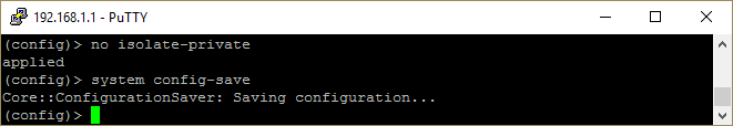 По умолчанию доступ между основной (Home) и дополнительной локальной сетью (в нашем примере HOME2) запрещен. Чтобы разрешить доступ, необходимо в интерфейсе командной строки выполнить команду: