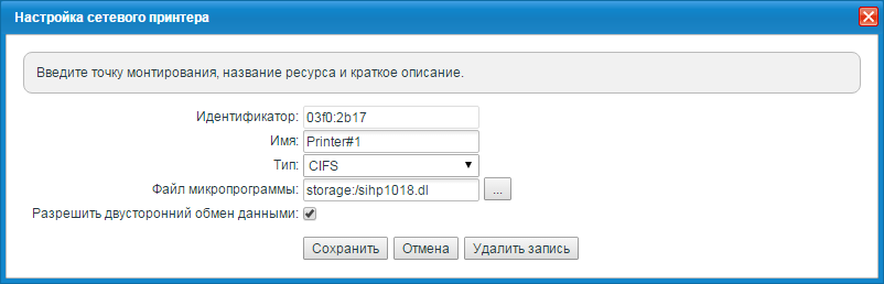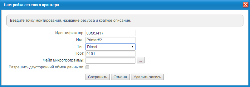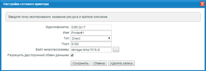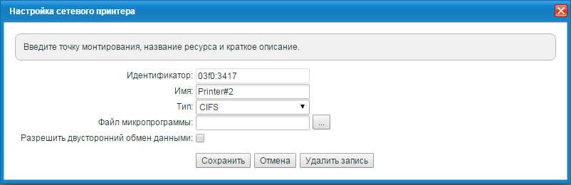 Для принтеров можно задать такие настройки как двухсторонний обмен и указать файл микропрограммы.