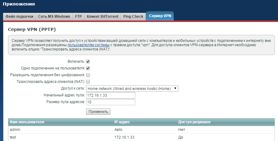 В нашем примере мы будем использовать интернет-центр серии Keenetic в качестве сервера PPTP (VPN).
