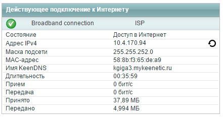 При этом, интернет-центр имеет "серый" (внутренний) IP-адрес.