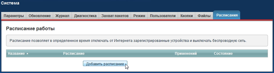 2. Перейдите в меню Система на вкладку Расписание и нажмите кнопку Добавить расписание.