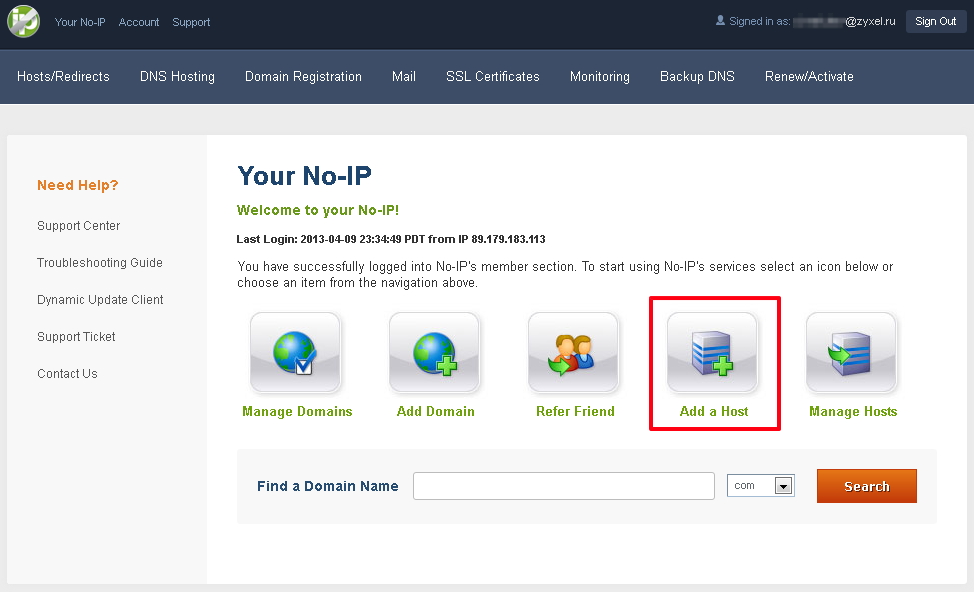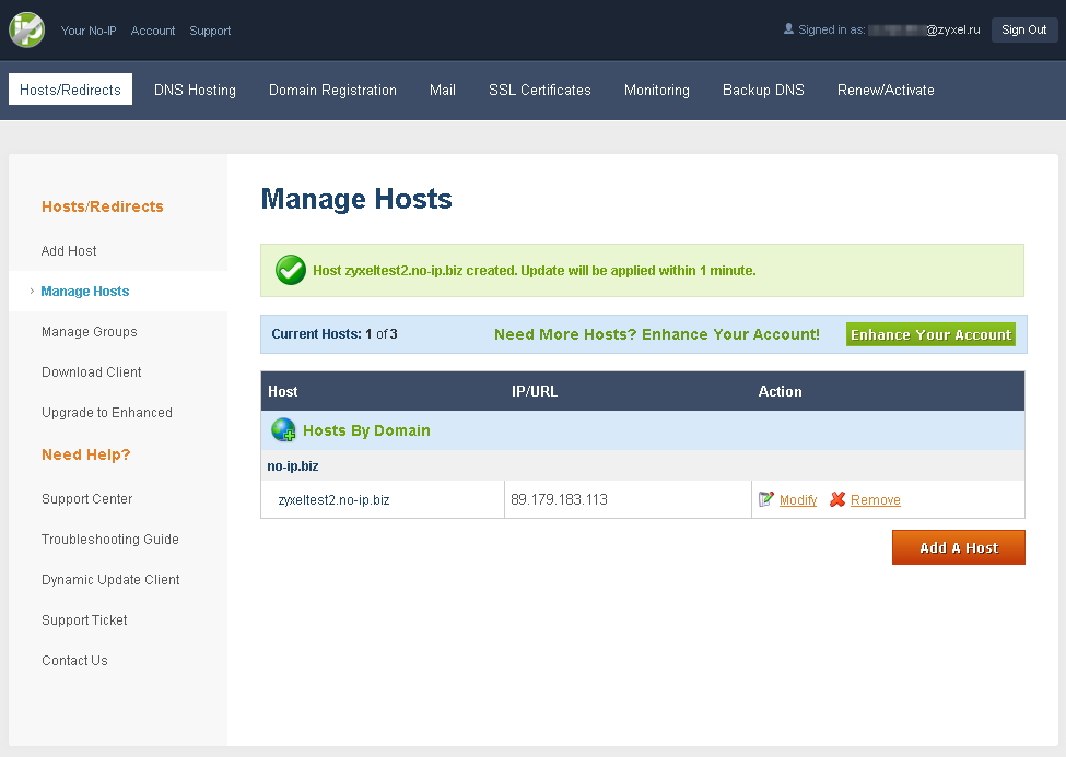 Таким образом, учетная запись на сервисе No-IP была создана и включена.