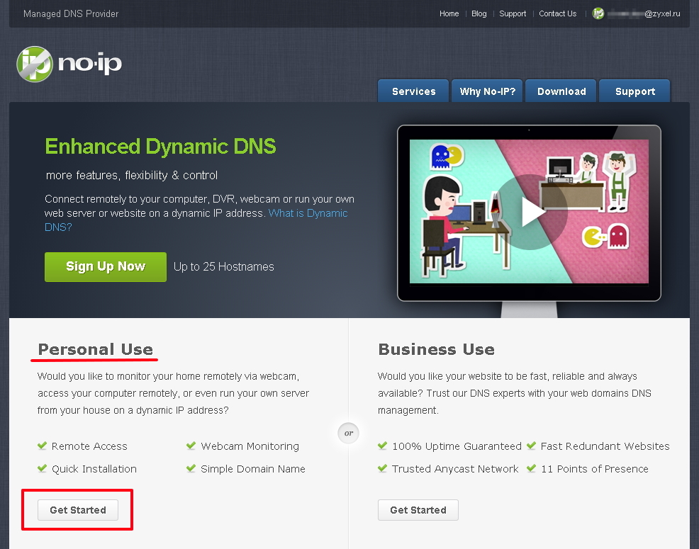 Внимание! Скриншоты (копии экранов) в данной статье сделаны на момент её написания. Оформление и структура сайта www.noip.com могут быть изменены владельцами.