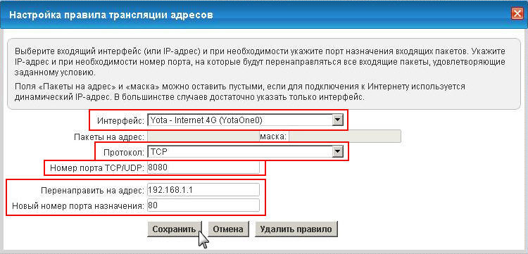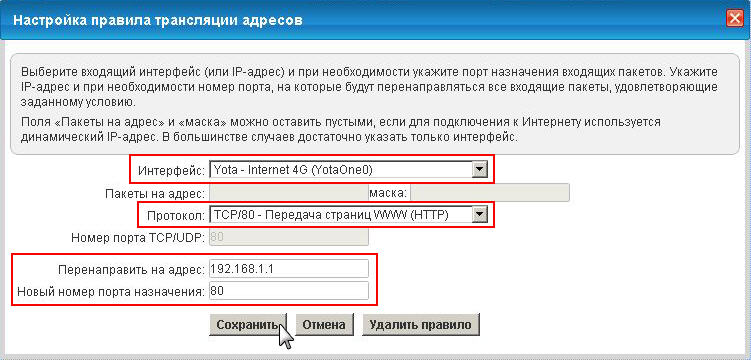 Внимание! 4G-модем Yota LTE также является маршрутизатором (т.е. еще один NAT), поэтому для доступа по внешнему IP-адресу из локальной сети необходима поддержка функции NAT Loopback. Модемы LU150 и LU156 эту функцию не поддерживают. Поэтому вы не сможете получить доступ к веб-конфигуратору интернет-центра из вашей локальной сети, используя внешний IP-адрес. Доступ к веб-конфигуратору интернет-центра при использовании внешнего IP-адреса будет работать только из Интернета.