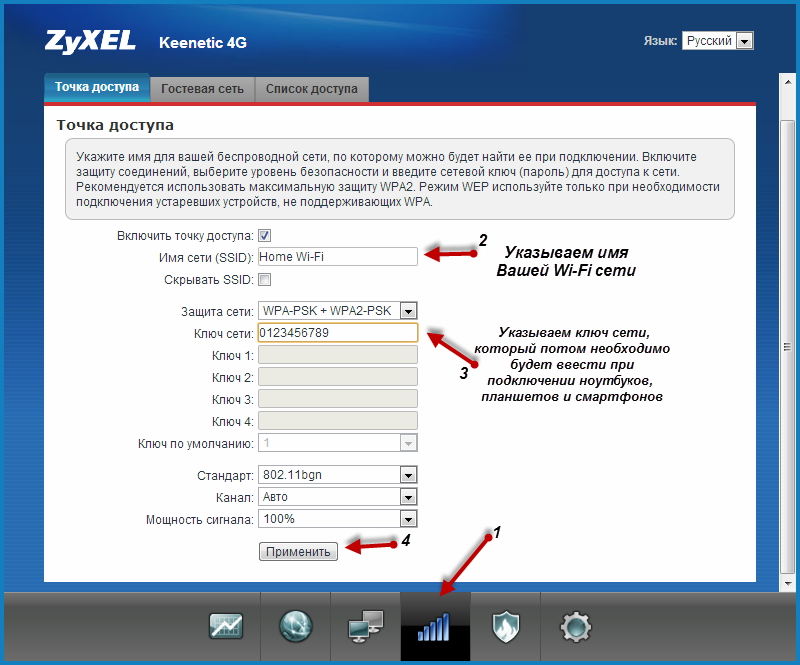 Для настройки точки доступа Wi-Fi выполните следующее: