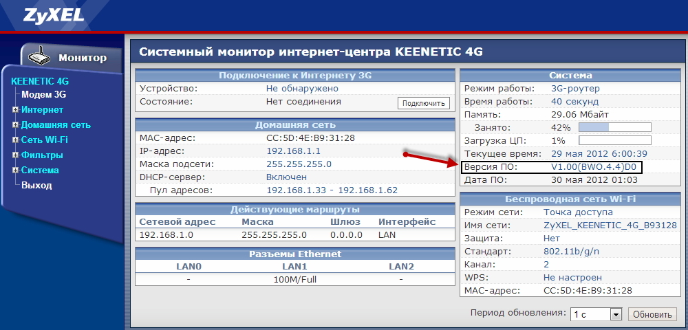 Для интернет-центров 1-го поколения (в белом корпусе) текущую версию микропрограммы можно посмотреть в системном мониторе в разделе Система в строке Версия ПО.