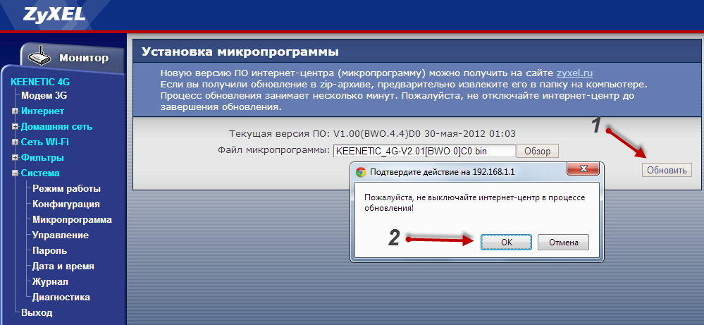 Для интернет-центров 2-го поколения (в черном корпусе) и для устройств 1-го поколения с микропрограммой NDMS, обновление происходит следующим образом: