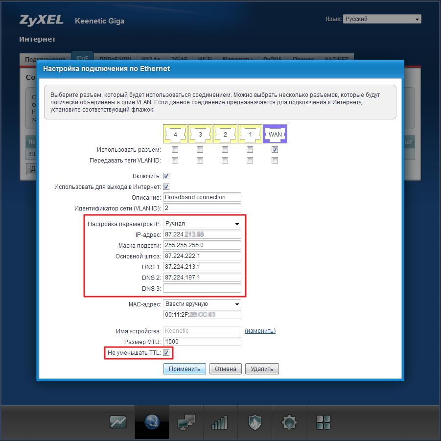 При необходимости, вы можете изменить значение в поле Размер MTU (например, указать 1436).