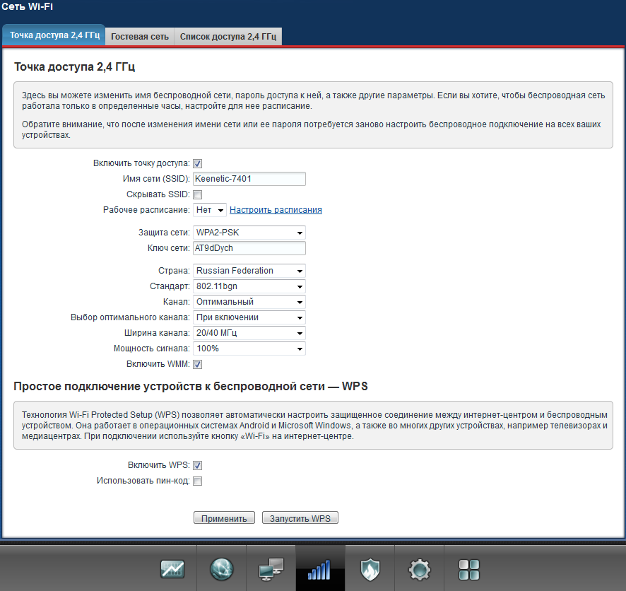 NOTE: В данной статье показана настройка версий ОС NDMS 2.11 и более ранних. Настройка актуальной версии ПО представлена в статьях "Беспроводная сеть Wi-Fi 2,4 ГГц" и "Беспроводная сеть Wi-Fi 5 ГГц".