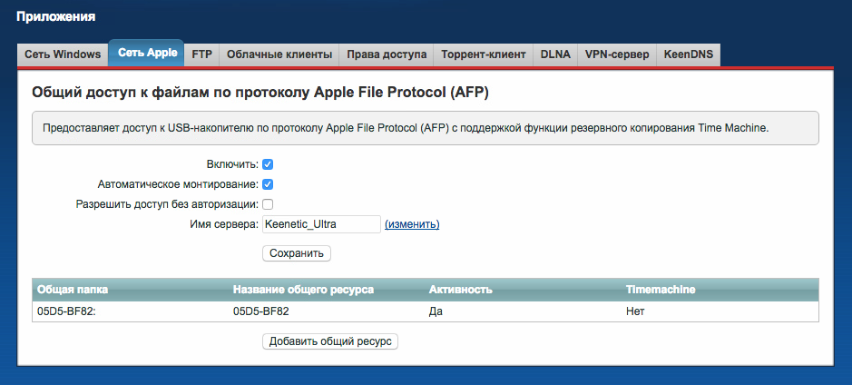 Перед настройкой убедитесь, что в вашем устройстве установлена операционная система NDMS версии 2.07.B2 или выше, а также установлен компонент микропрограммы Сервер AFP.