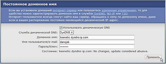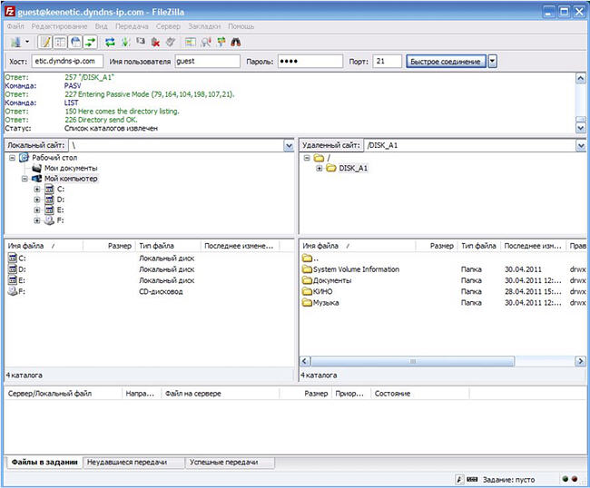 Теперь вы сможете производить подключение к FTP-серверу по доменному имени (в нашем примере по доменному имени keenetic.dyndns-ip.com). Использование DynDNS удобно даже при использовании статического IP – вы всегда можете привязать домен к другому IP-адресу, да и вводить буквенное имя гораздо удобнее, чем запоминать цифры IP-адреса.