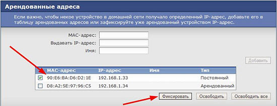 Рекомендуется привязать (фиксировать) IP-адрес по MAC-адресу компьютера, чтобы определенному компьютеру интернет-центр Keenetic всегда выдавал один и тот же IP-адрес.
