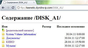 2. Подключение с помощью веб-браузера. В таком случае в адресной строке браузера необходимо вводить ftp://<имя домена или IP адрес>:<порт подключения>. Если используется стандартный номер FTP-порта (21), то его можно не вводить. Пример: ftp://keenetic.dyndns-ip.com/