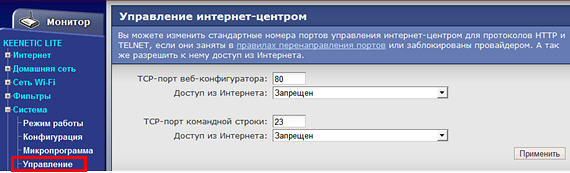 Если вам необходимо открыть доступ к локальному ресурсу по одному из стандартных портов, которые используются для управления устройства (например, порты 80 и 23), то необходимо изменить либо номер порта на локальном сервере, либо изменить номер порта управления устройством.