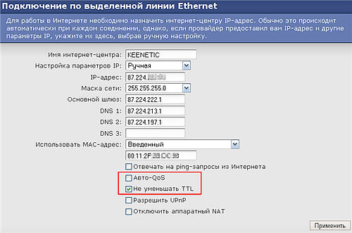 В этом же меню рекомендуем отключить функцию Авто-QoS и запретить уменьшение TTL (Не уменьшать TTL).