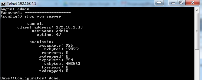 Или через интерфейс командной строки интернет-центра Keenetic, выполнив команду show vpn-server