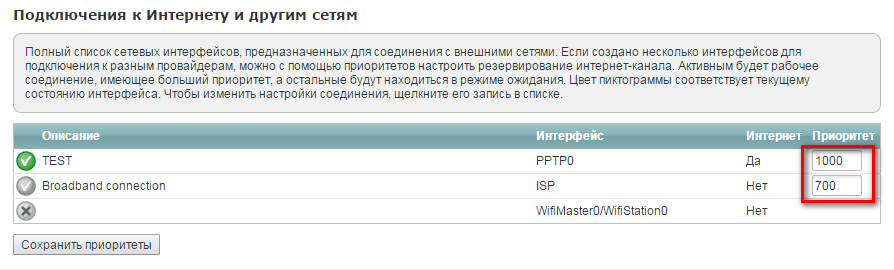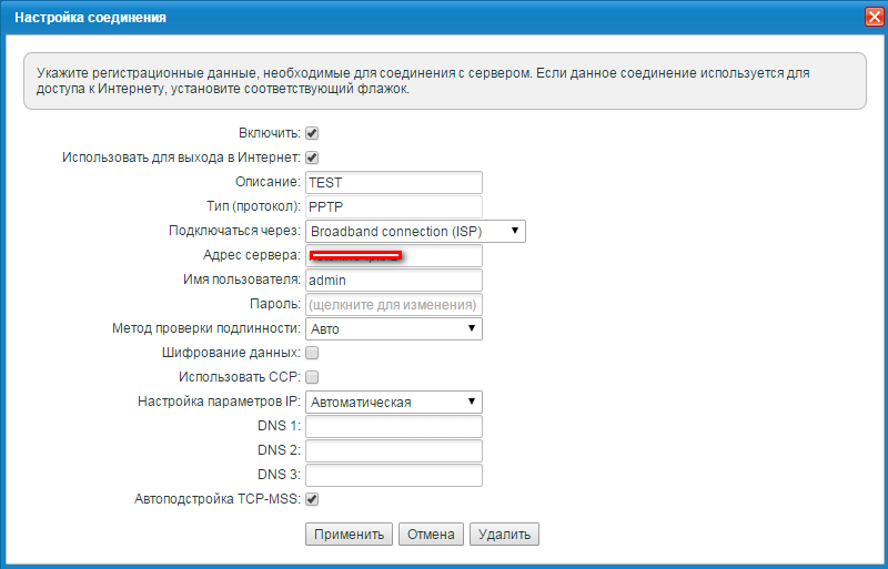 Настройка Использовать для доступа в Интернет и указание высшего приоритета для интерфейса PPTP включают маршрут по умолчанию на устройстве через PPTP-туннель. На устройствах серии Keenetic под управлением NDMS V2 возможен лишь один (безусловный) маршрут по умолчанию. Если данную настройку не выполнить, ответы на проброшенные с сервера сквозь туннель запросы будут отправлены клиентом через WAN-интерфейс. Это приведет к проблеме "треугольного маршрута".