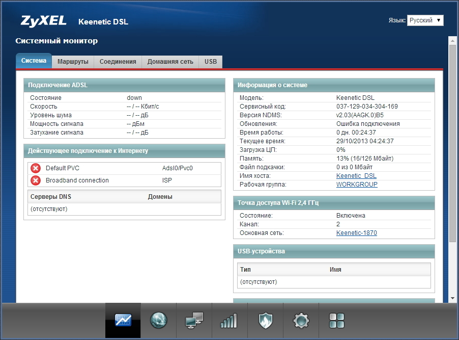 На этом настройка интернет-центра Keenetic DSL завершена.