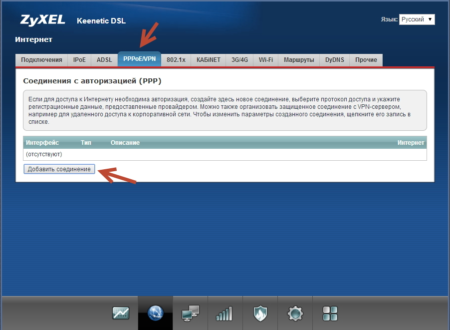 Далее перейдите на вкладку PPPoE/VPN и добавьте соединение.