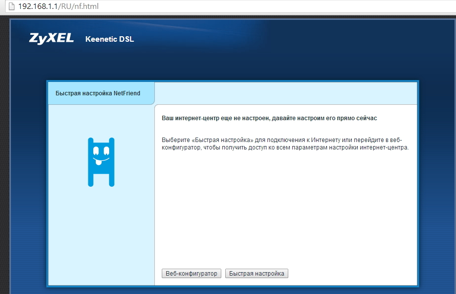 Далее появится Мастер быстрой настройки NetFriend, в котором выберите пункт Веб-конфигуратор.