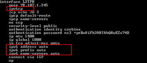 5. Чтобы внешний интерфейс, который используется для подключения к провайдеру, получал IPv6-адреса, необходимо включить данную функцию. Так как в нашем примере используется подключение L2TP, команды будут выглядеть следующим образом: