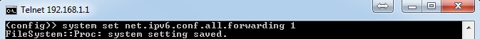 4. Выполните команду: system set net.ipv6.conf.all.forwarding 1