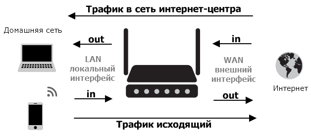 – входящее (in) для трафика из внешней сети в локальную на WAN-порту, для LAN-интерфейсов это направление исходящее (out);