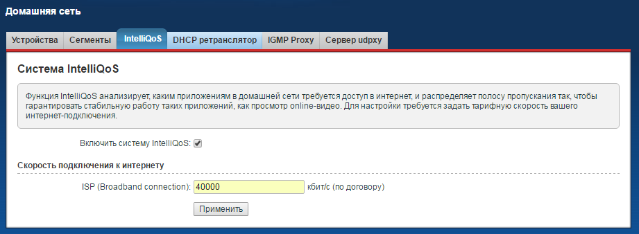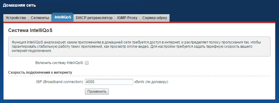 2. После установки компонента в меню Домашняя сеть появится вкладка IntelliQoS.