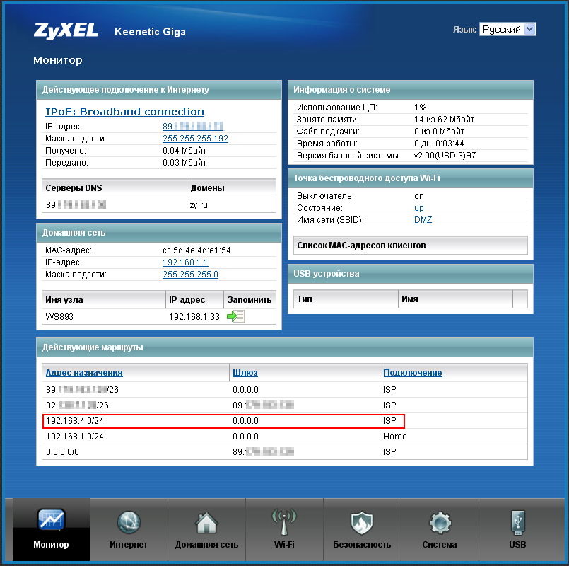 Например, на интерфейсе ISP (основной WAN-интерфейс для выхода в Интернет) добавлен IP-адрес 192.168.4.10 с маской подсети 255.255.255.0: